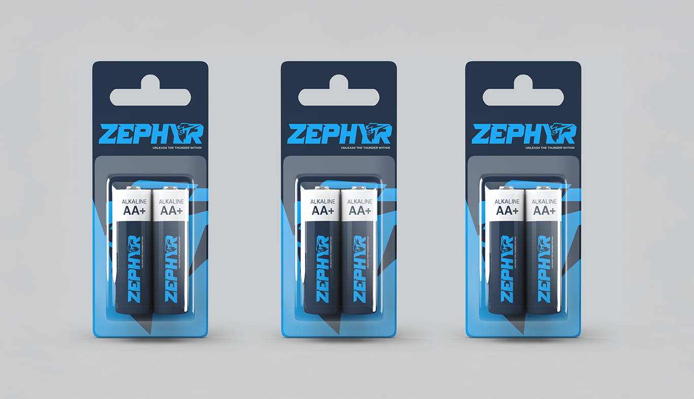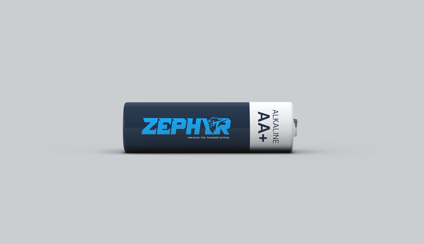The final brand identity positioned Zephyr as a powerful and future-ready battery brand with a distinctive visual presence. The logo and tagline together deliver a strong emotional impact, instantly communicating energy, dominance, and innovation. This branding system gives Zephyr a scalable foundation for market expansion while ensuring high recall and a bold competitive edge in the energy sector.